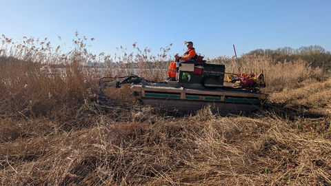 We rely on a range of different specialised boats to remove and excavate weeds and reeds. Harvester boats, for instance, are specialised in dealing with floating weeds, e.g., duckweed, whereas long-reach excavators or crane boats can pull out deep-rooted reeds from even the hardest-to-reach locations.